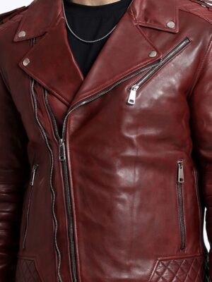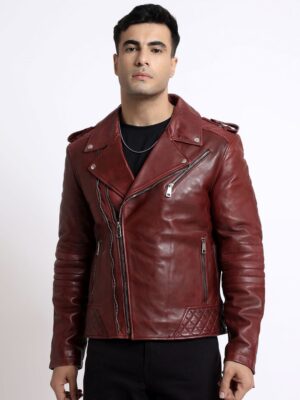 Men Black Leather Water Resistant Longline Bomber with Patchwork Jacket