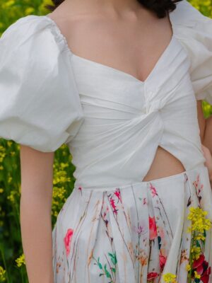 Women Floral Printed Puff Sleeve Cut-Outs Fit & Flare Dress