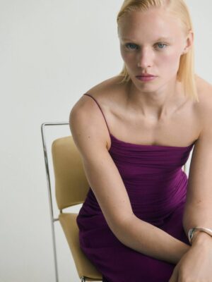 Shoulder Straps Ruched Asymmetrical Midi Dress