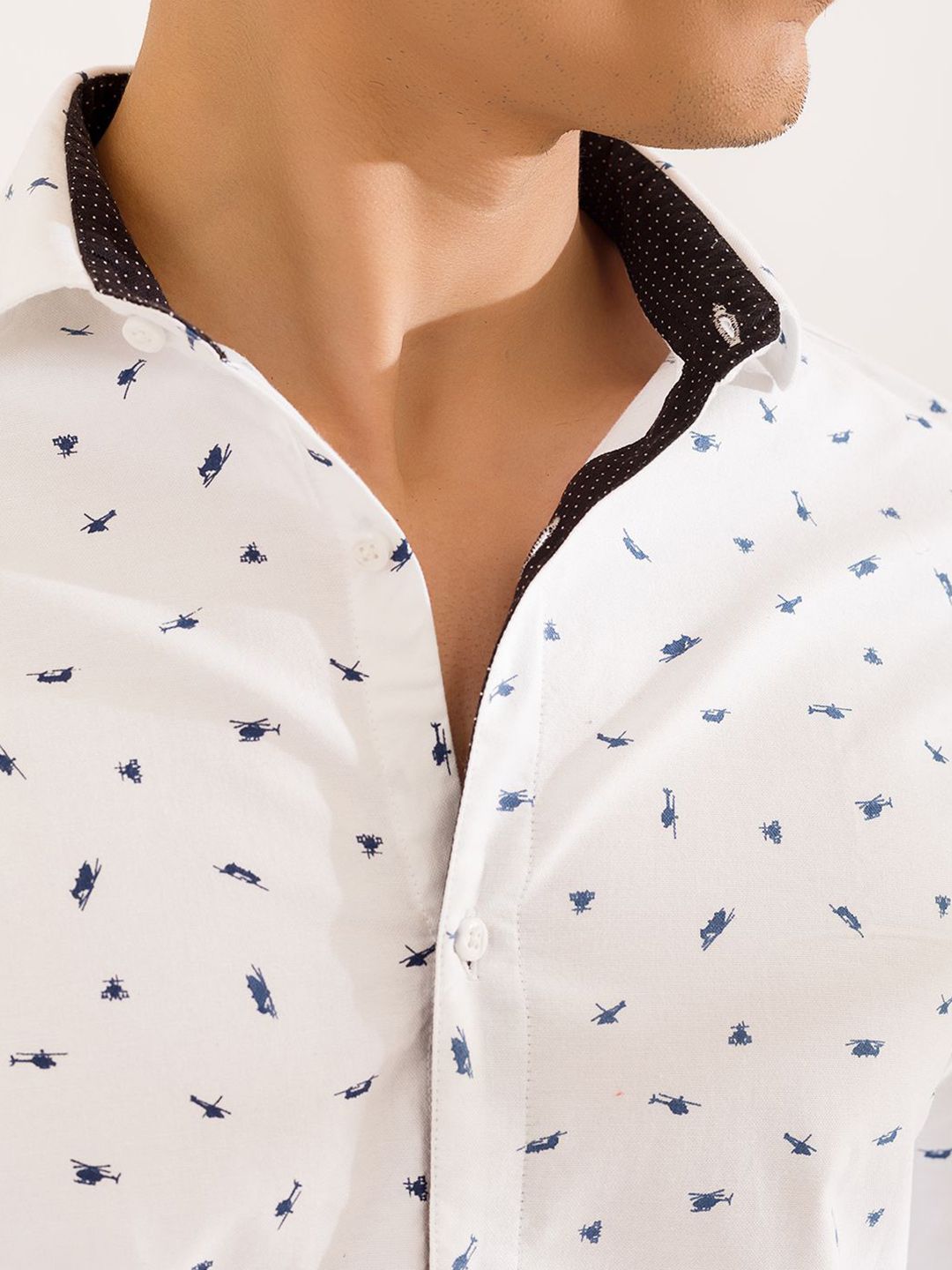 White conversational printed opaque Casual shirt ,has a cutaway collar, button placket, na pocket, long regular sleeves, curved hem