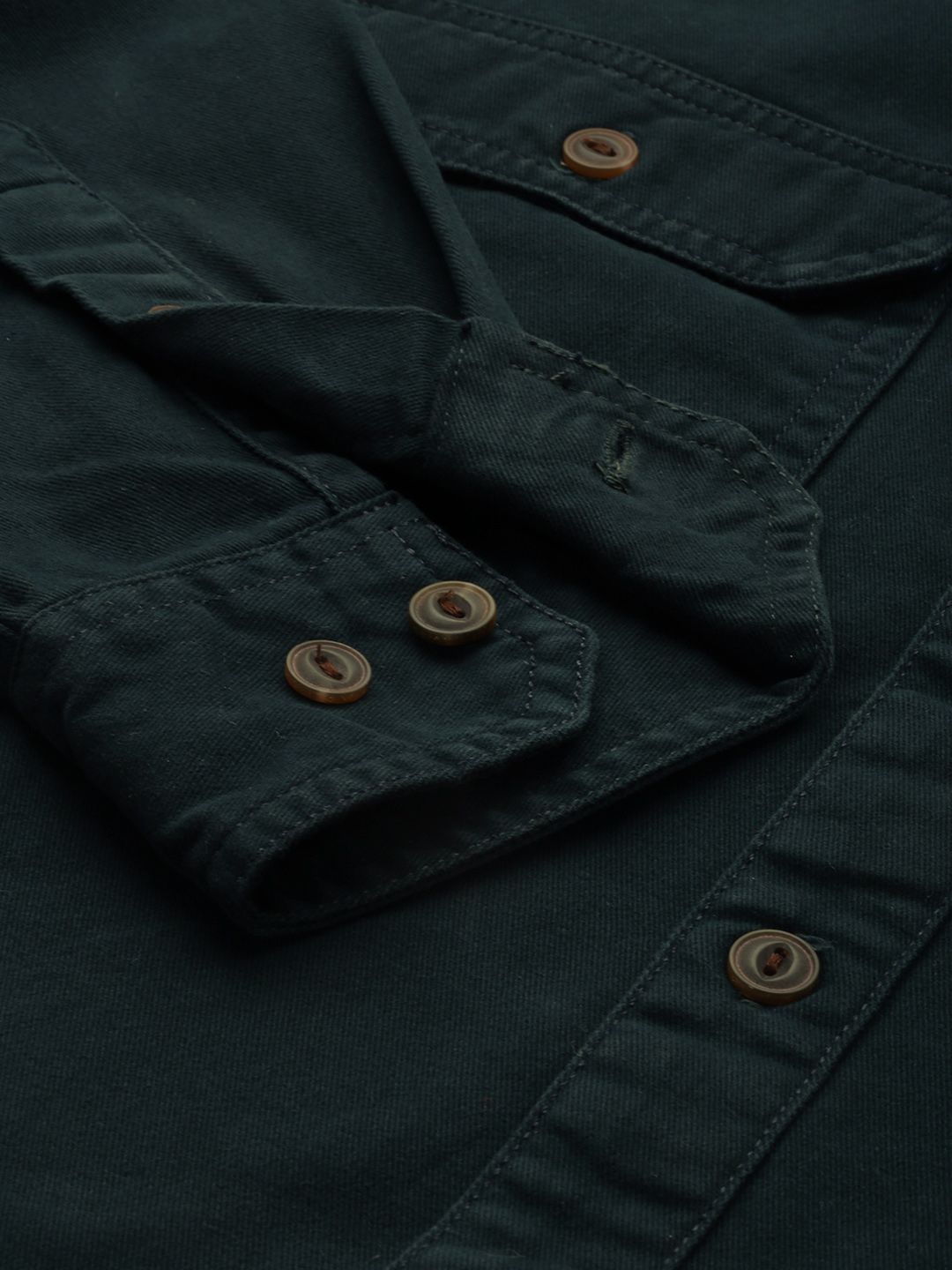 Tealsolid opaque Casual shirt ,has a spread collar, button placket, 2 flap pocket, long regular sleeves, curved hem